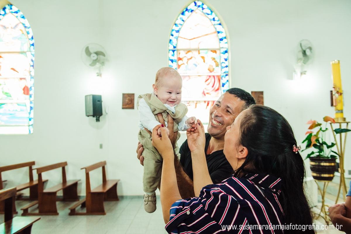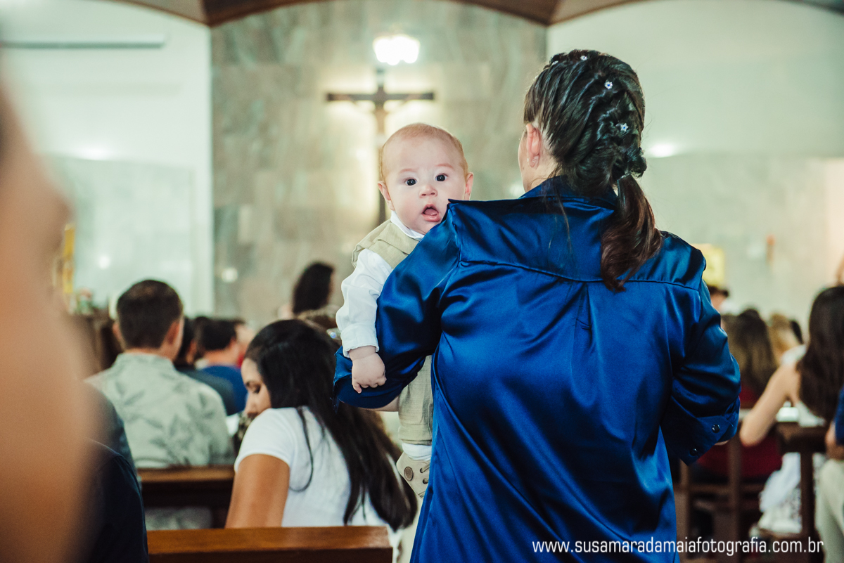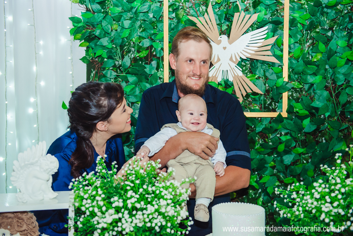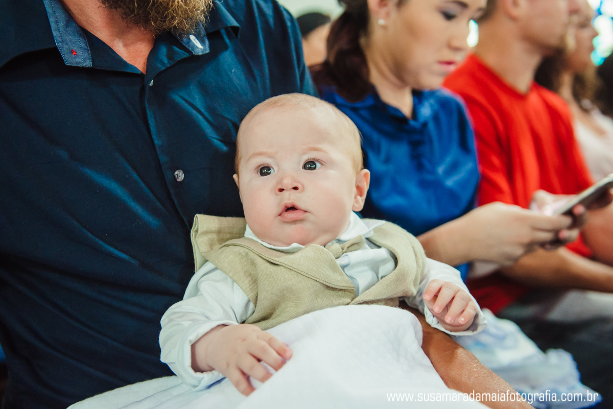 O pequeno Noah se comportou super bem durante seu batizado, sempre muito calmo e paciente, passou boa parte do Batismo no colo de seu pai e sua mãe. Os dindos que estavam bem pertinho do Noah, transbordavam felicidade pela honra e privilégio daquele momento.